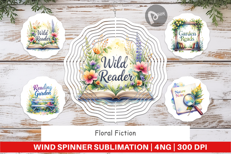 Sublimation Designs Book Lover Gift Gift For Reader Wind Spinner Sublimation Sublimation Spinner Design Printable Gift Png Vintage Floral Gift Outdoor Decor Gift Floral Fiction Quotes Botanical Reading Art