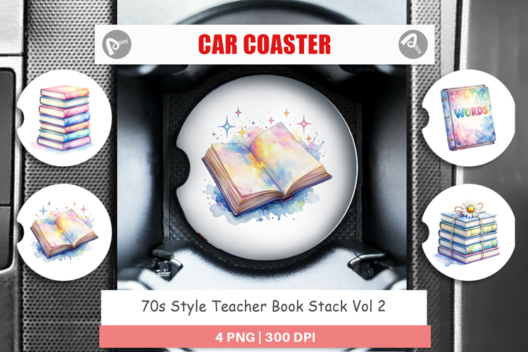 70s Style Teacher Book Stack Car Coaster example image 1