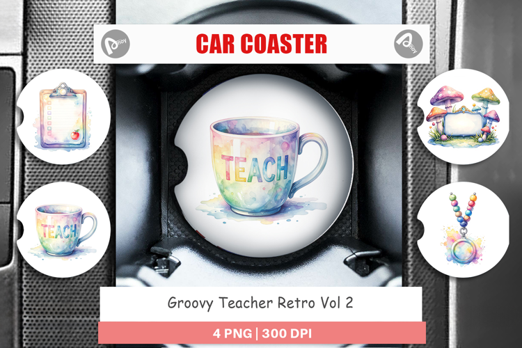 Groovy Teacher Retro Car Coaster example image 1