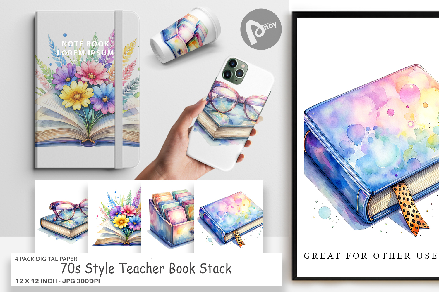 Similar Design Products to 70s Teacher Book Stack Digital Paper
