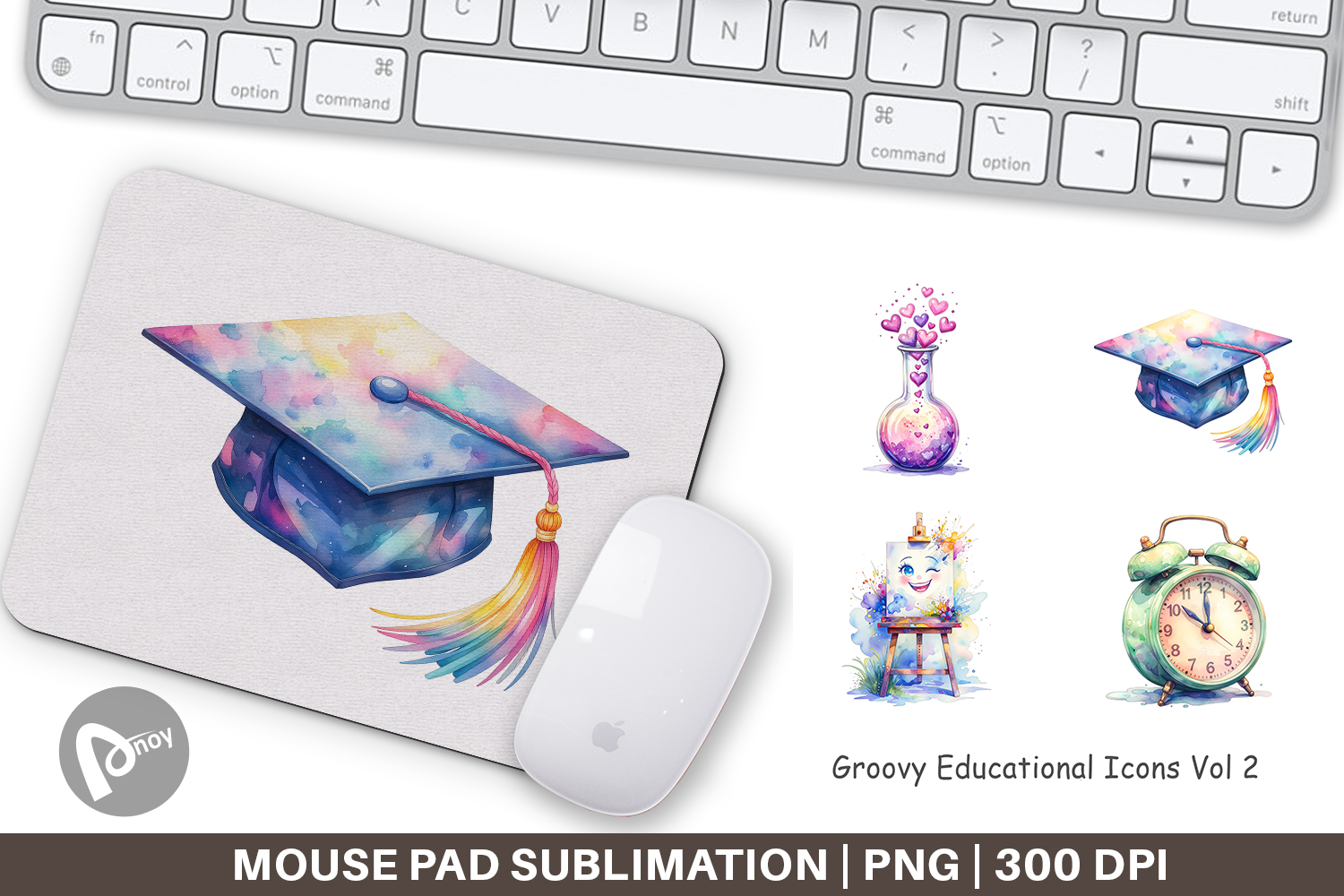 Back To School Gift Gift For Teacher Sublimation Designs Mouse Pad Sublimation Mouse Pad Png Desk Accessory Printable Gift Png Groovy Educational Icons Retro Teacher Icons Teacher Office Decor