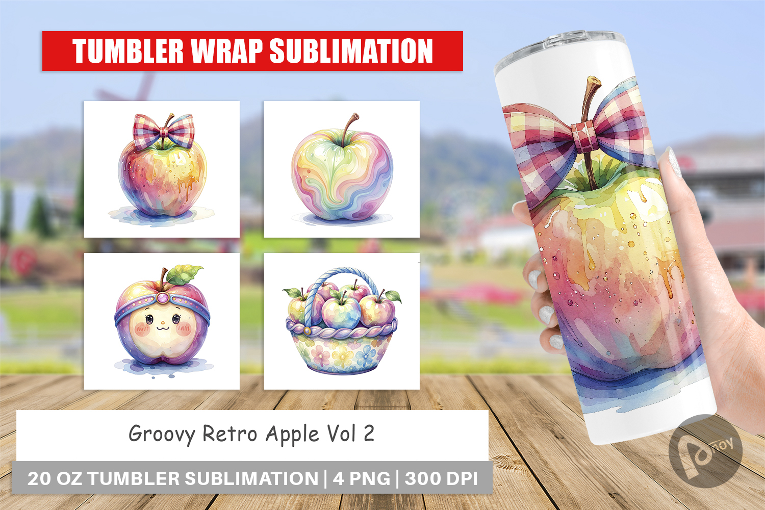 Gift For Teacher Sublimation Designs Diy Gift Idea 20 Oz Skinny Tumbler Tumbler Sublimation Design Tumbler Wrap Png Printable Tumbler Wrap Groovy Retro Apple Teacher Apple Gift Retro Teacher Theme