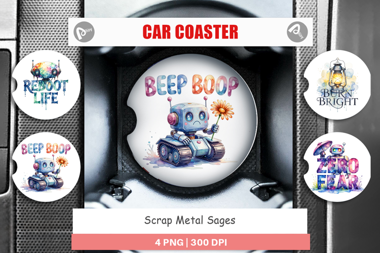 Sublimation Designs Car Coaster Png Car Coaster Sublimation Cute Robot Design Printable Gift Idea Gift For Tech Lover Diy Car Accessories Vintage Robot Quotes Robot Quote Png Retro Robot Gift