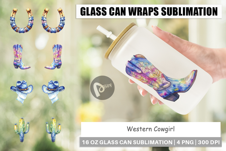 Gift For Her Cowgirl Sublimation Iced Coffee Cup Libbey Glass Sublimation Glass Can Wrap Png Country Girl Gift Western Aesthetic Western Glass Can Printable Cup Wrap Western Cowgirl Wrap