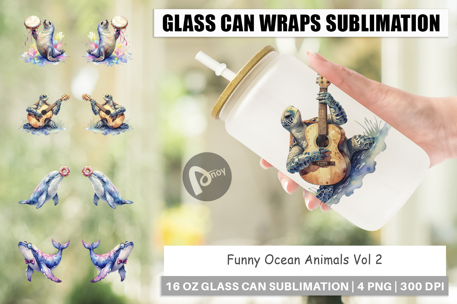 Sublimation Designs Gift For Coworker Funny Gift Idea Libbey Glass Sublimation Glass Can Wrap Png Funny Ocean Animals Funny Iced Coffee Printable Cup Wrap Diy Tumbler Gift Animal Humor Glass