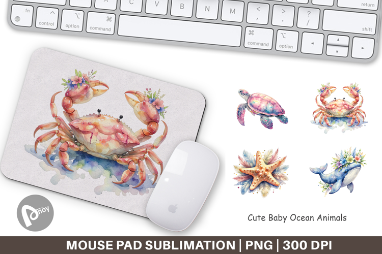 Cute Baby Animals Sublimation Designs Gift For New Mom Mouse Pad Sublimation Mouse Pad Png Cute Office Decor Printable Gift Png Diy Desk Gift Nursery Theme Decor Ocean Animal Pad