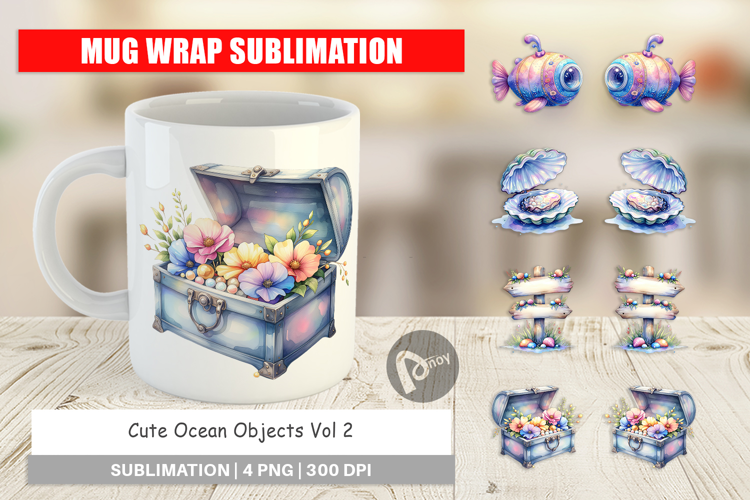 Cute Ocean Objects Mug Wrap example image 1
