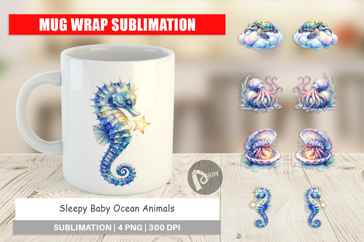 Sleepy Baby Ocean Animals Mug Wrap example image 1