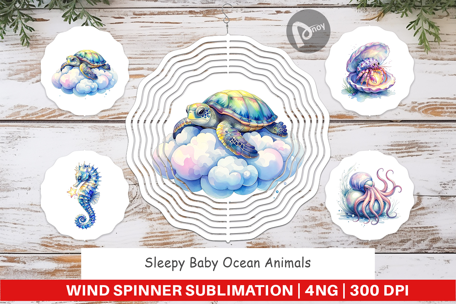 Sleepy Baby Ocean Animals Wind Spinner example image 1
