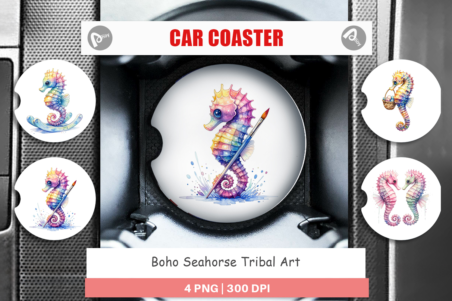 Boho Seahorse Tribal Car Coaster example image 1