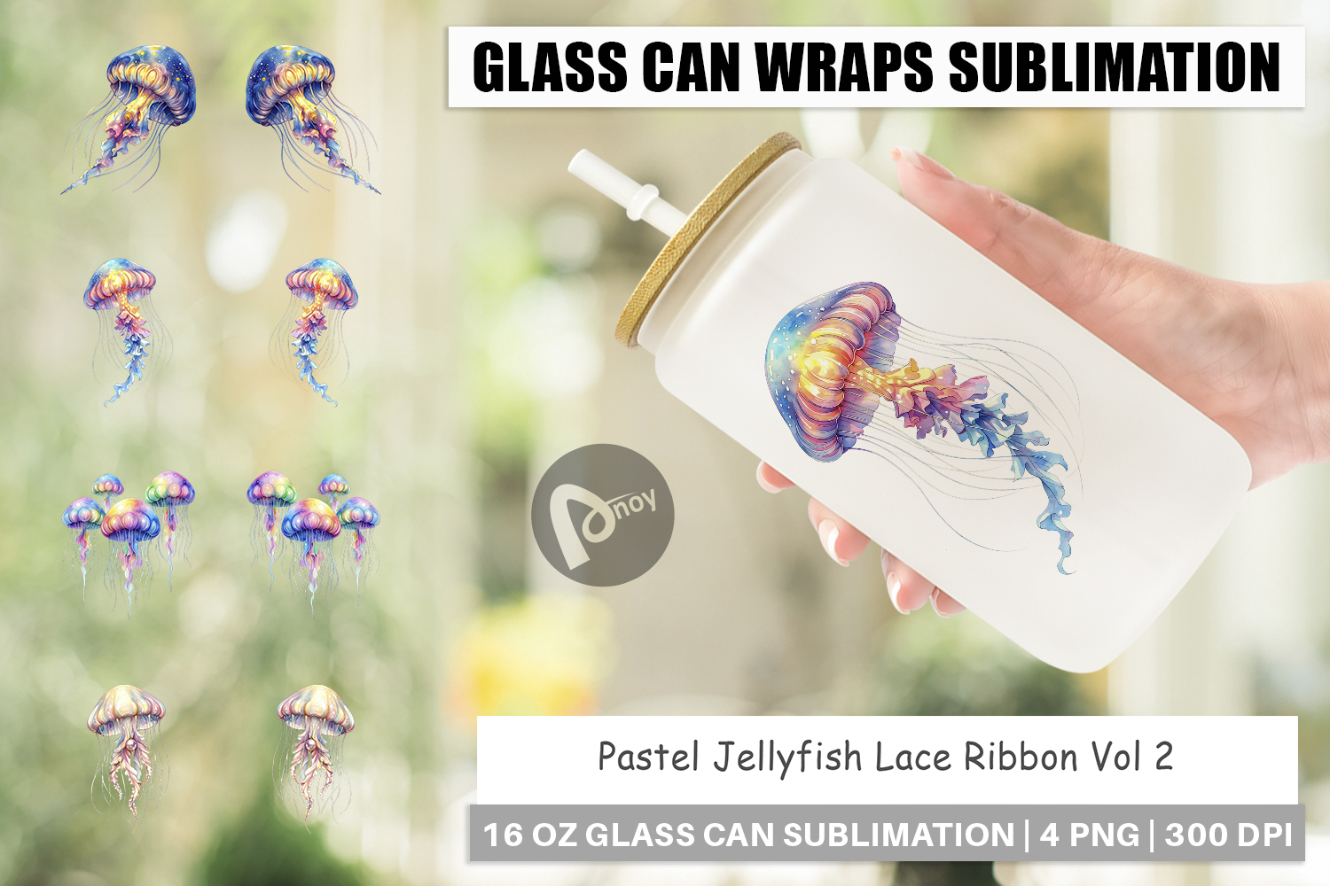 Sublimation Designs Iced Coffee Cup Libbey Glass Sublimation Glass Can Wrap Png Printable Cup Wrap Diy Glass Can Pastel Jellyfish Art Ocean Life Gift Lace Ribbon Wrap Jellyfish Glass Can