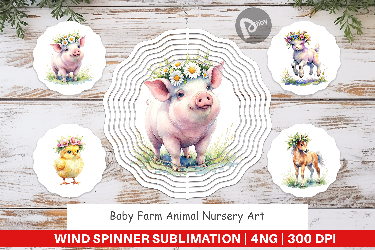 Sublimation Designs Diy Gift Idea Gift For New Mom Farm Animal Nursery Wind Spinner Sublimation Sublimation Spinner Design Baby Farm Animal Png Cute Garden Decor Printable Gift Png Nursery Theme Gift