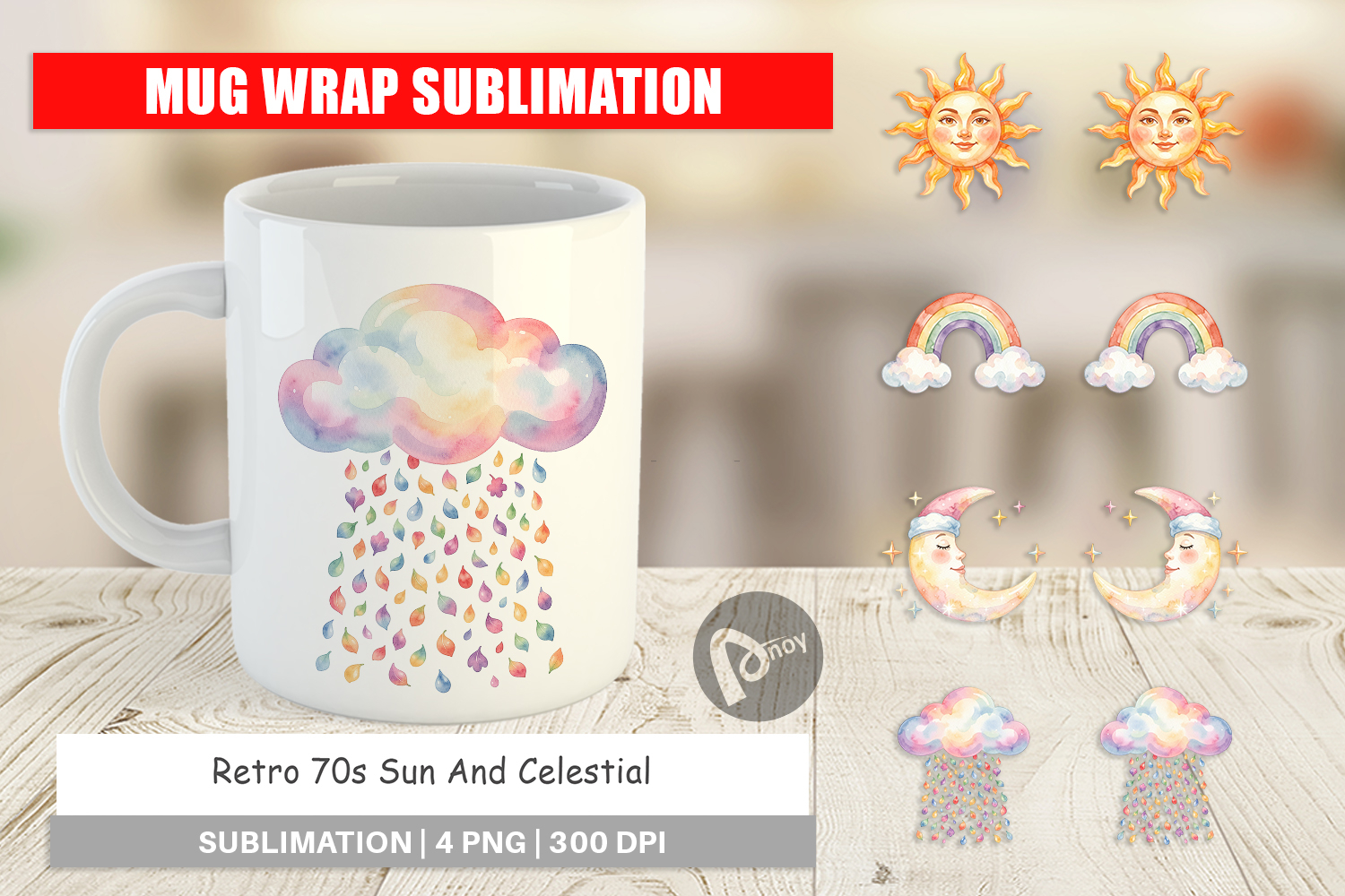 Retro 70s Sun Celestial Mug Wrap example image 1