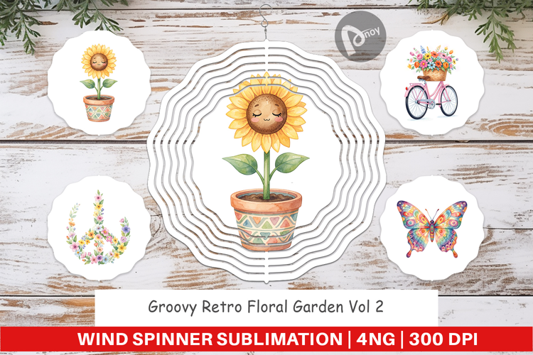 Groovy Retro Floral Garden Wind Spinner example image 1