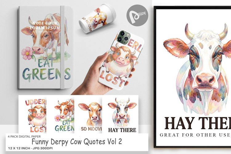 Similar Design Products to Funny Derpy Cow Quotes Digital Paper