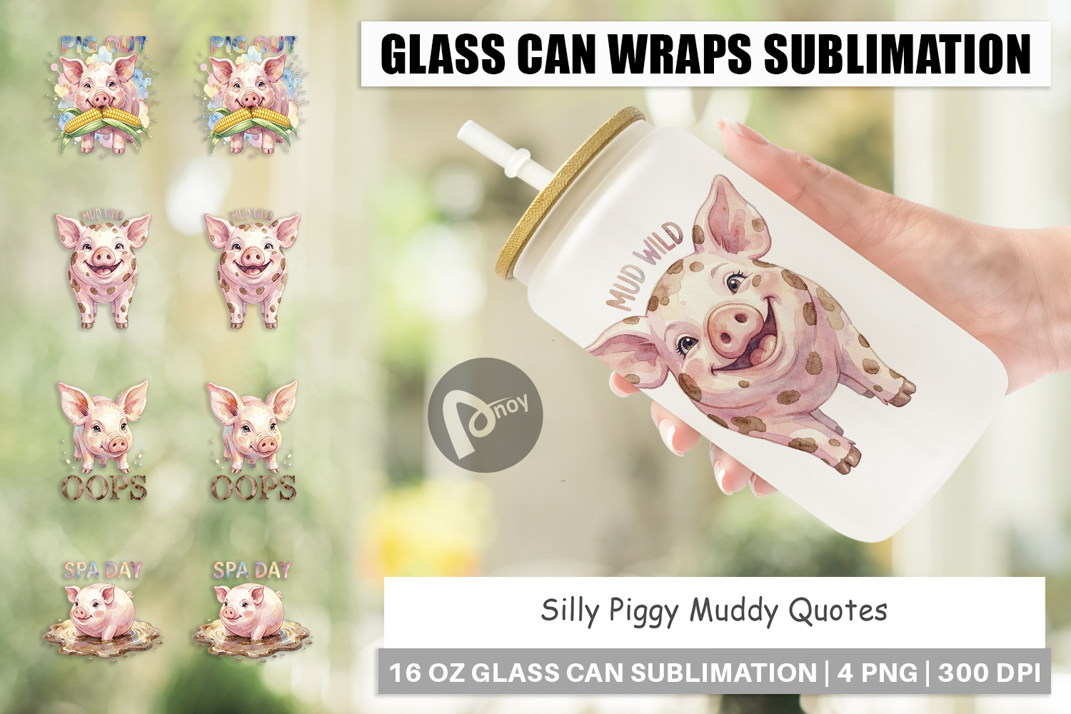 Sublimation Designs Farmer Gift Idea Libbey Glass Sublimation Glass Can Wrap Png Pig Lover Gift Funny Farm Animal Printable Cup Wrap Diy Glass Can Silly Piggy Quotes Muddy Pig Cup Wrap