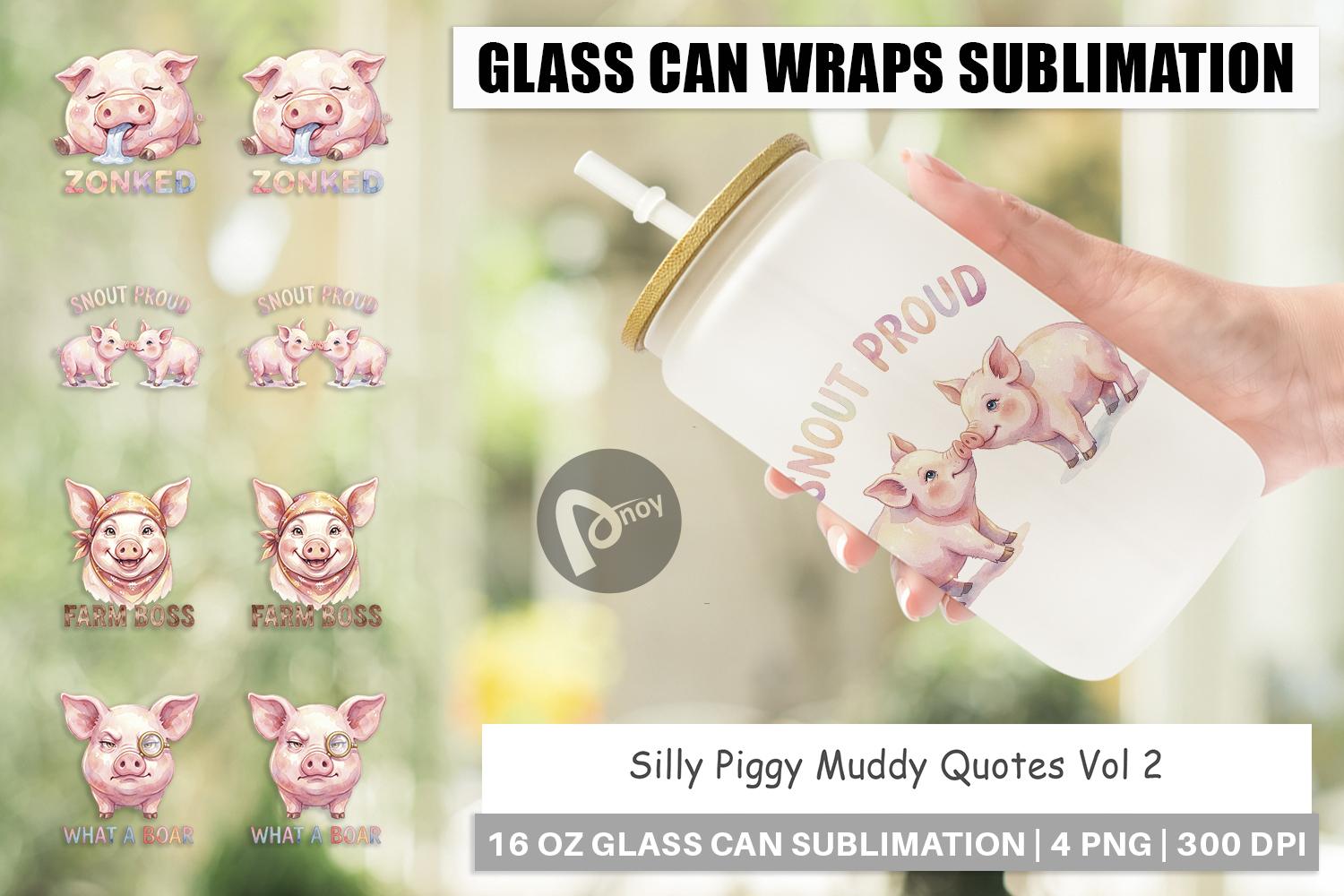 Sublimation Designs Farmer Gift Idea Libbey Glass Sublimation Glass Can Wrap Png Pig Lover Gift Funny Farm Animal Printable Cup Wrap Diy Glass Can Silly Piggy Quotes Muddy Pig Cup Wrap