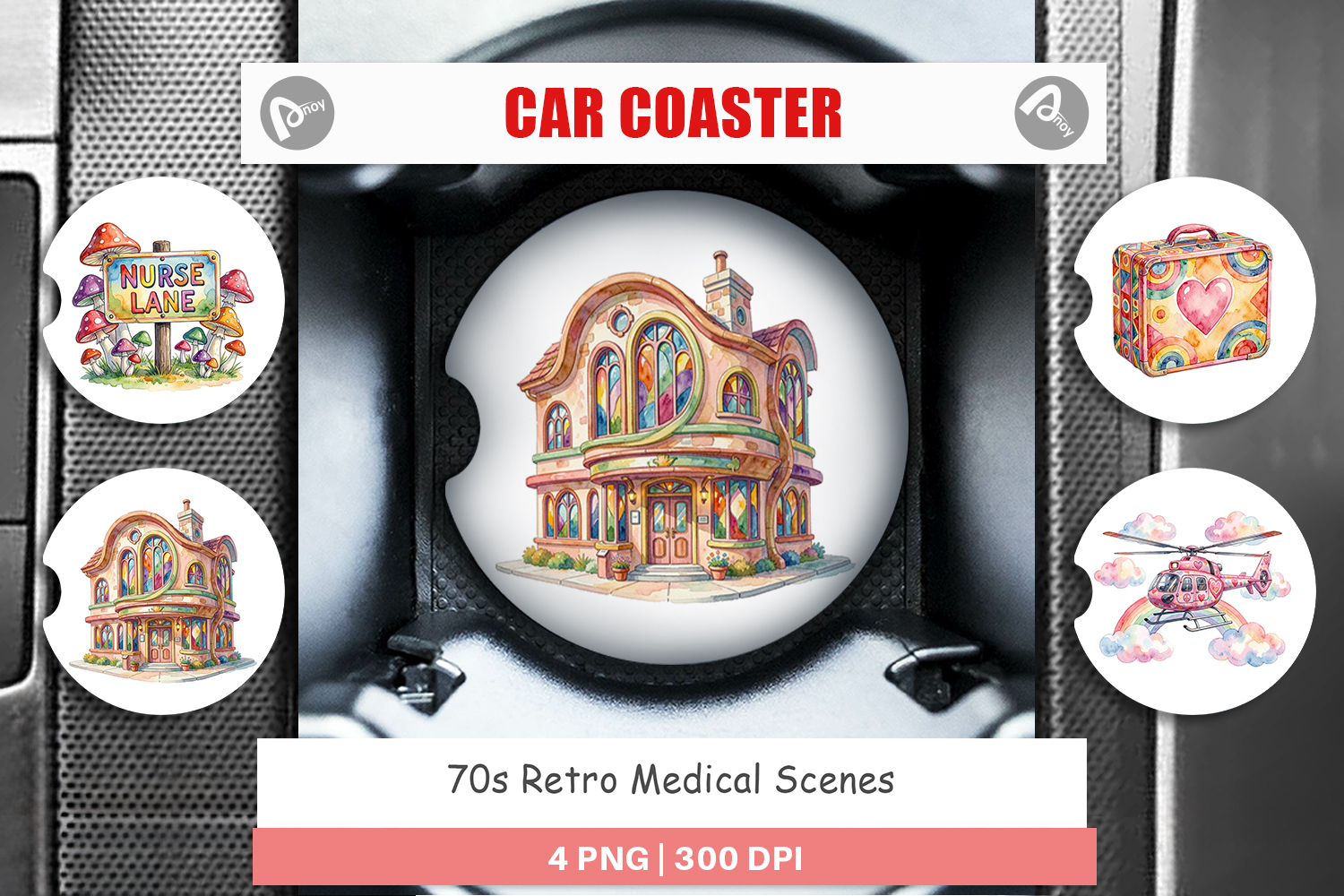 Sublimation Designs Gift For Nurse Car Coaster Png Car Coaster Sublimation Doctor Gift Idea Printable Car Accessory Retro Medical Scenes 70s Retro Coaster Medical Theme Gift Retro Groovy Gift