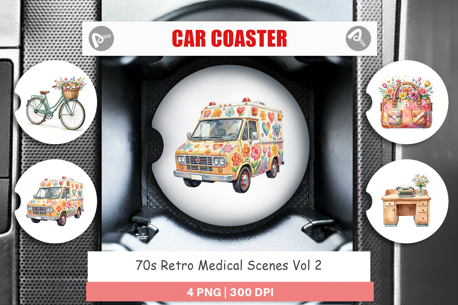 Sublimation Designs Gift For Nurse Car Coaster Png Car Coaster Sublimation Doctor Gift Idea Printable Car Accessory Retro Medical Scenes 70s Retro Coaster Medical Theme Gift Retro Groovy Gift