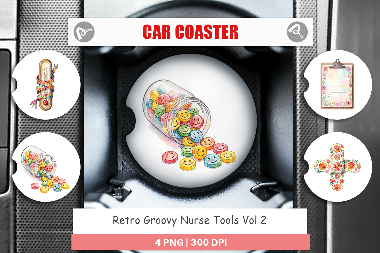 Sublimation Designs Gift For Nurse Car Coaster Png Car Coaster Sublimation Nursing School Gift Car Accessory Design Printable Gift Png Retro Nurse Tools Groovy Medical Tools Medical Theme Coaster