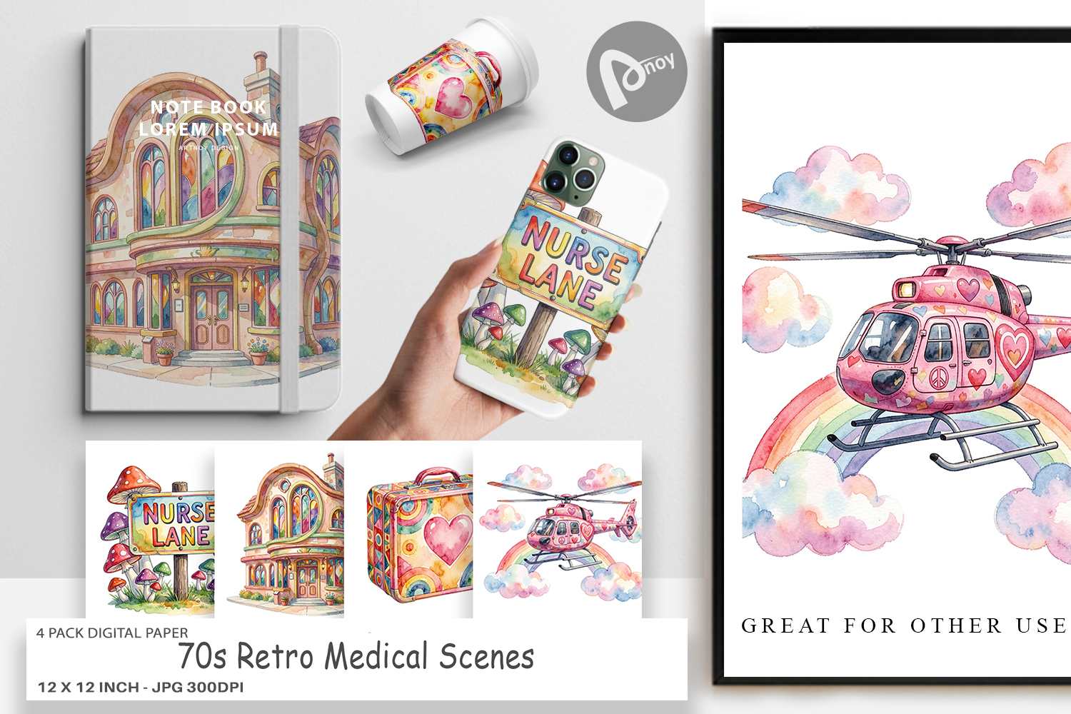 Digital Background Craft Paper Printable Scrapbook Paper Digital Paper Bundle Gift For Nurse Junk Journal Pages Sublimation Paper Background 70s Retro Medical Medical Scenes Paper Doctor Scrapbook