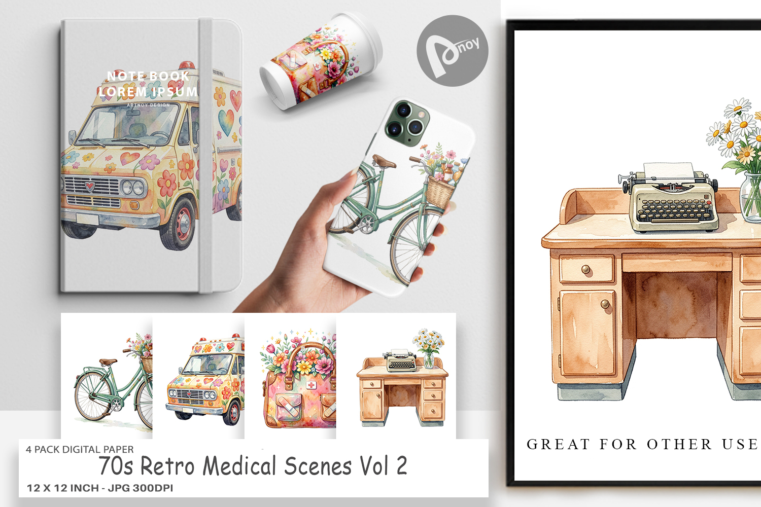 Similar Design Products to 70s Retro Medical Scenes Digital Paper