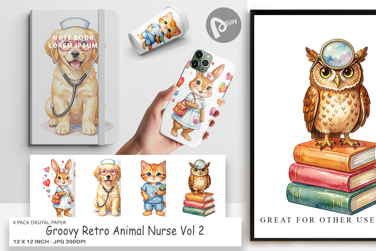 Similar Design Products to Groovy Retro Animal Nurse Digital Paper