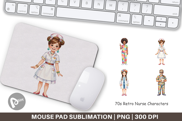 Sublimation Designs Gift For Nurse Mouse Pad Sublimation Mouse Pad Png Medical Professional Gift Diy Desk Accessory Printable Office Gift 70s Retro Nurse Nurse Character Art Groovy Nurse Desk Mat