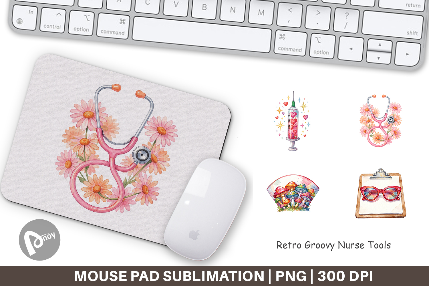 Sublimation Designs Gift For Nurse Nursing School Gift Mouse Pad Sublimation Mouse Pad Png Diy Desk Accessory Printable Office Gift Retro Nurse Tools Groovy Medical Tools Medical Theme Desk Mat