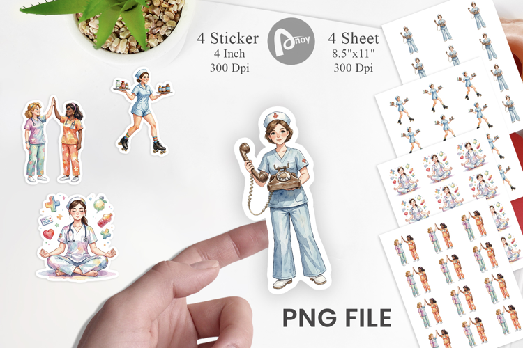 Planner Stickers Sublimation Designs Gift For Nurse Journal Stickers Printable Sticker Sheet Laptop Decal Sticker Medical Professional Gift 70s Retro Nurse Nurse Character Sticker Groovy Nurse Sticker