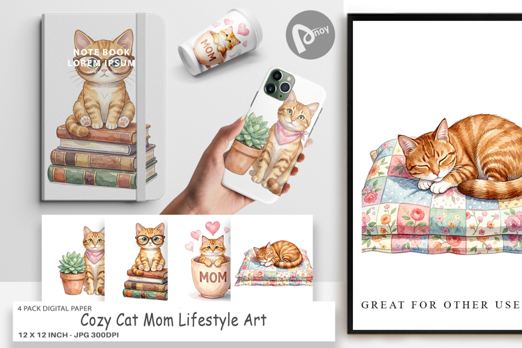 Similar Design Products to Cat Mom Lifestyle Art Digital Paper