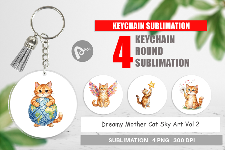 Sublimation Designs Cat Lover Gift Keychain Sublimation Round Keychain Png Printable Gift Png Diy Keychain Gift Dreamy Mother Cat Celestial Cat Gift Bag Charm Png Cat Sky Art Keychain