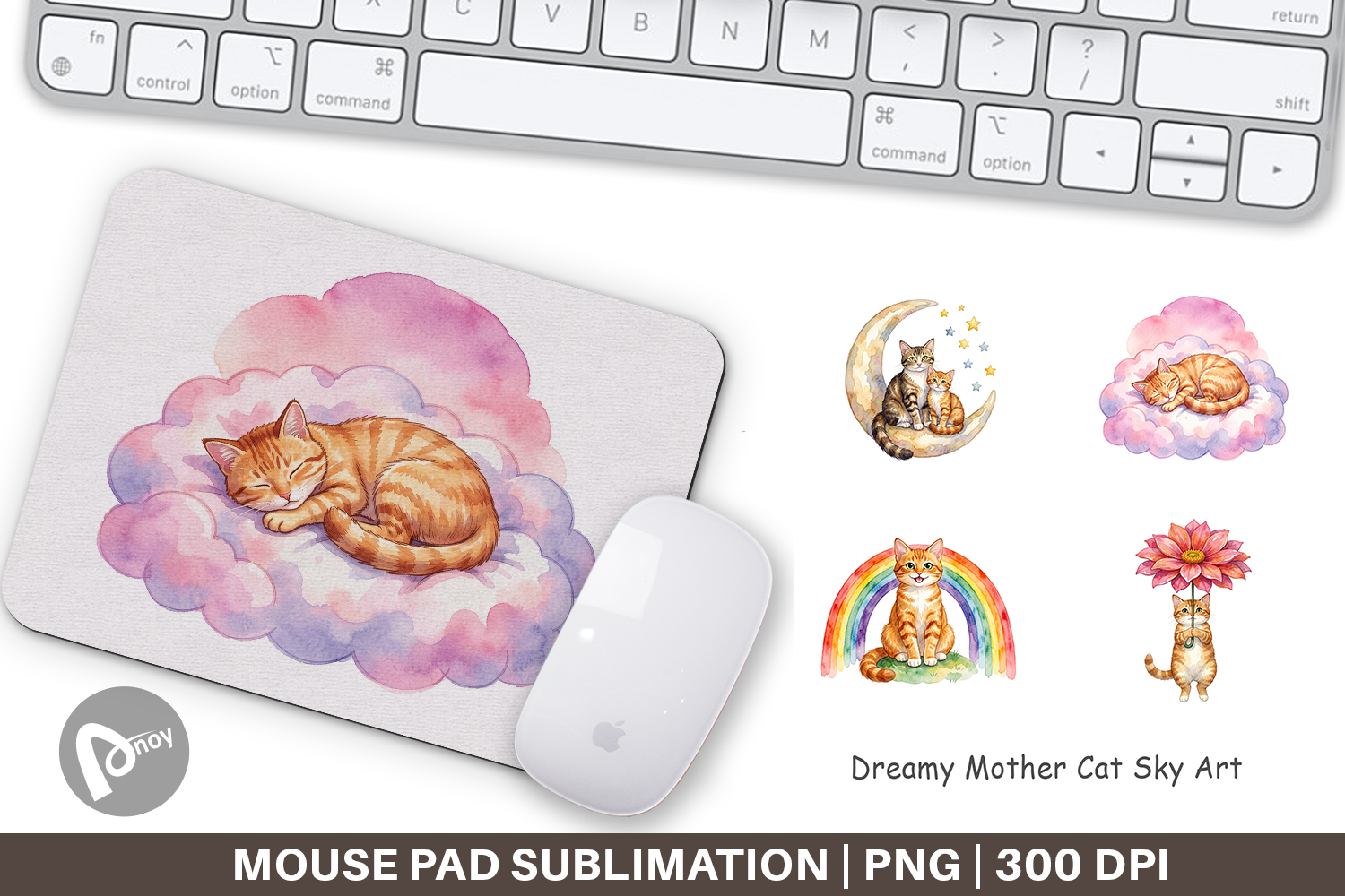 Sublimation Designs Cat Lover Gift Mouse Pad Sublimation Mouse Pad Png Desk Accessory Printable Gift Png Office Decor Gift Dreamy Mother Cat Celestial Cat Gift Cat Sky Art Design