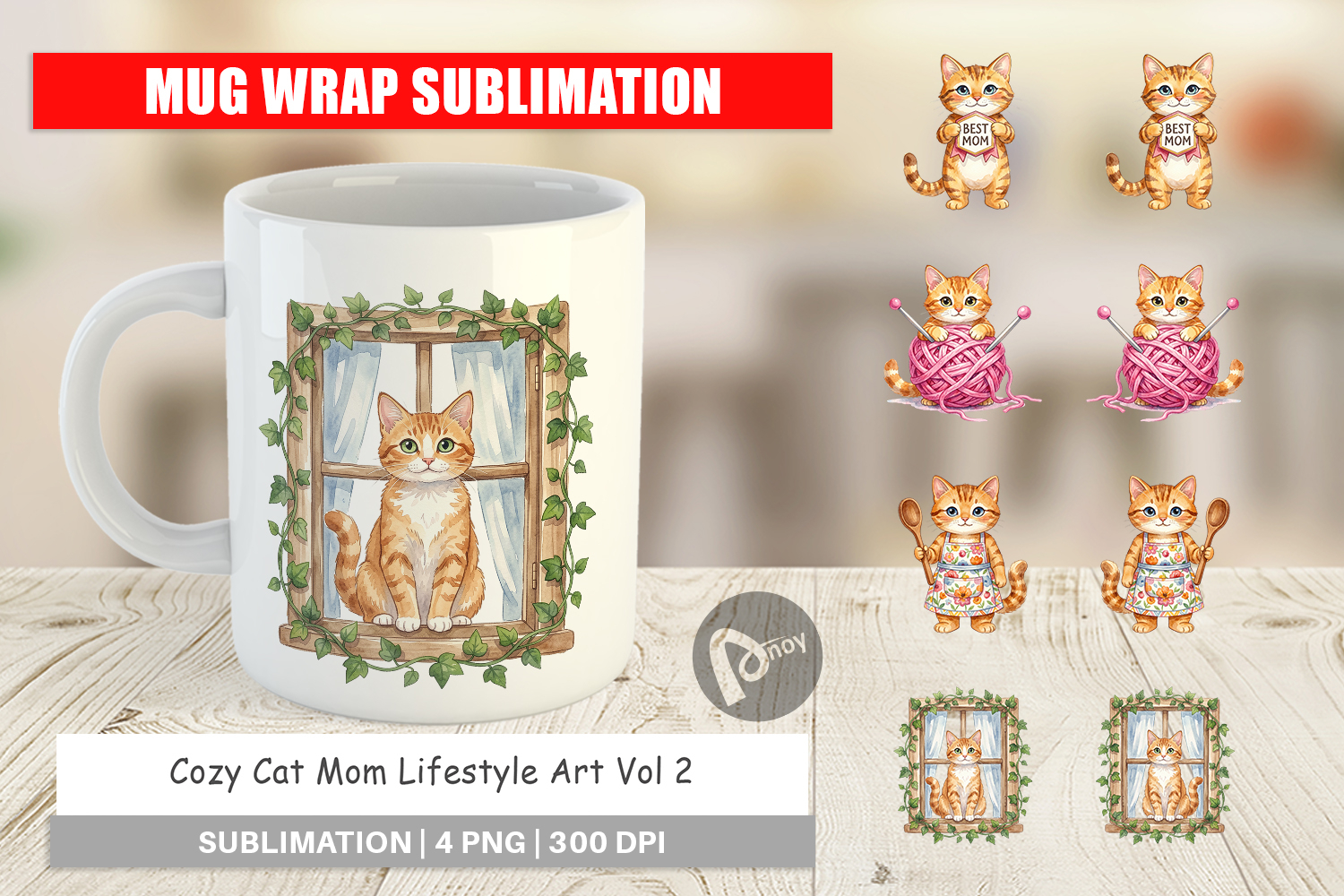Cozy Cat Mom Lifestyle Art Mug Wrap example image 1