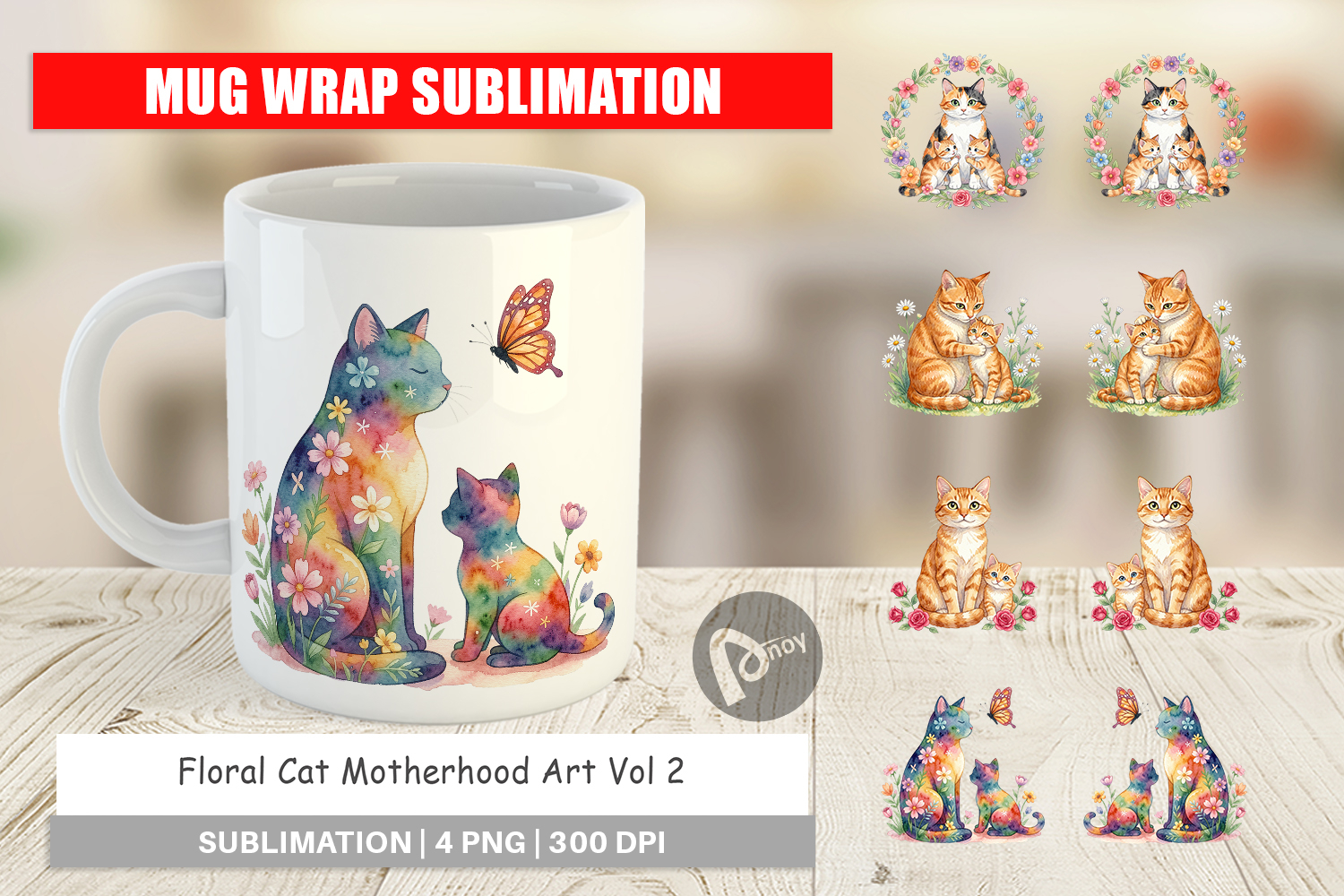 Floral Cat Motherhood Art Mug Wrap