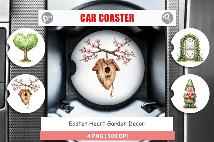 Sublimation Designs Diy Gift Idea Car Coaster Png Car Coaster Sublimation Watercolor Garden Art Easter Car Accessory Spring Season Gift Printable Auto Gift Easter Heart Design Garden Heart Decor
