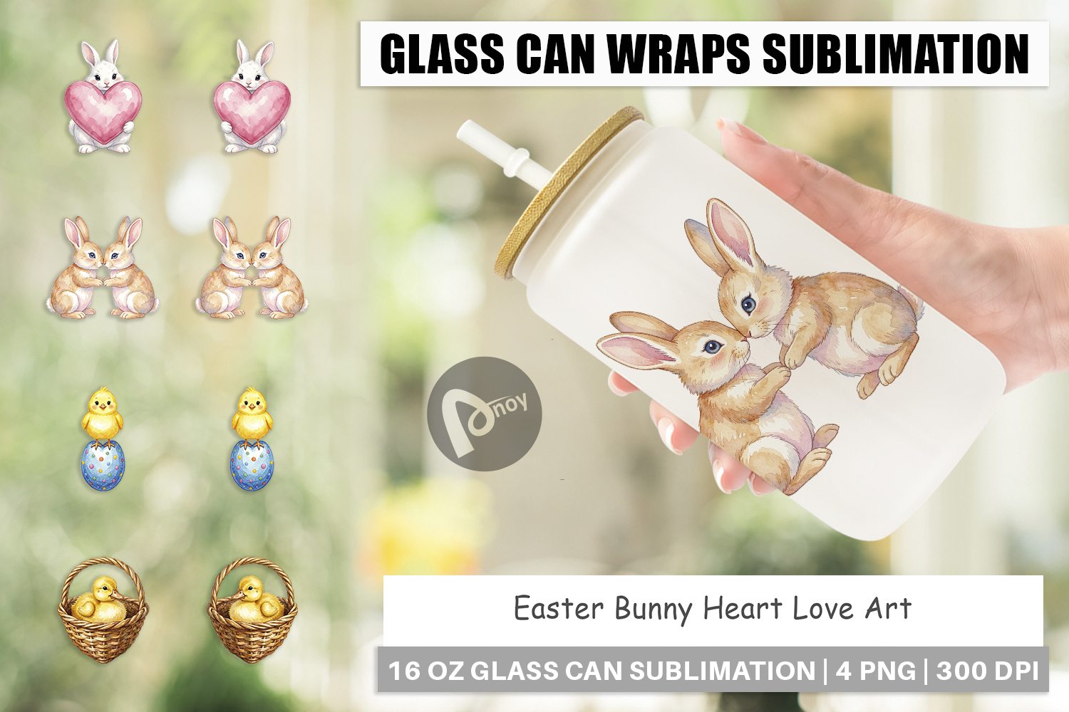 Sublimation Designs Diy Gift Idea Easter Bunny Art Iced Coffee Cup Libbey Glass Sublimation Glass Can Wrap Png Printable Cup Wrap Watercolor Easter Cup Easter Party Gift Love Heart Glass
