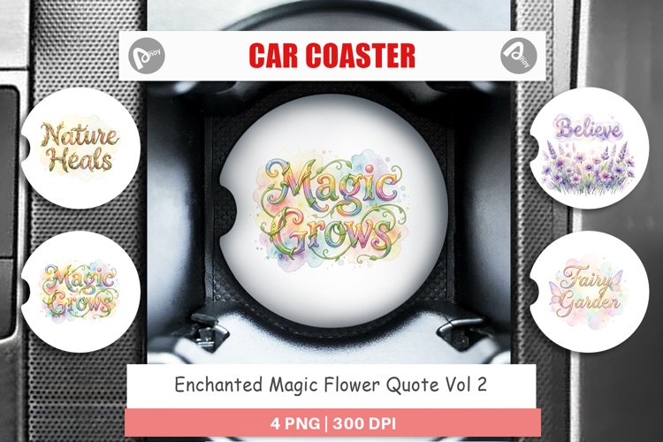 Sublimation Designs Car Coaster Png Car Coaster Sublimation Printable Car Gift Diy Car Accessories Gift For Flower Lover Enchanted Flower Quote Magic Flower Theme Inspirational Car Quote Magical Gift Idea