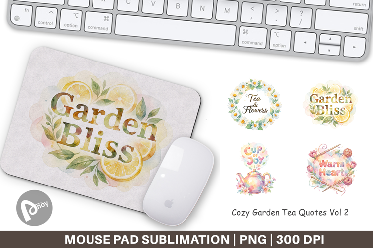 Sublimation Designs Gift For Tea Lover Diy Office Gift Gift For Gardener Mouse Pad Sublimation Mouse Pad Png Printable Desk Mat Cozy Garden Mouse Pad Tea Lover Desk Decor Garden Quote Office
