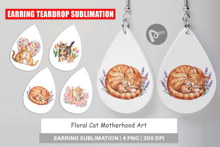 Teardrop Earring Png Gift For New Mom Earring Sublimation Designs Sublimation Earrings Png Printable Earring Design Diy Jewelry Gift Motherhood Gift Floral Cat Motherhood Floral Cat Jewelry Cat Mom Jewelry