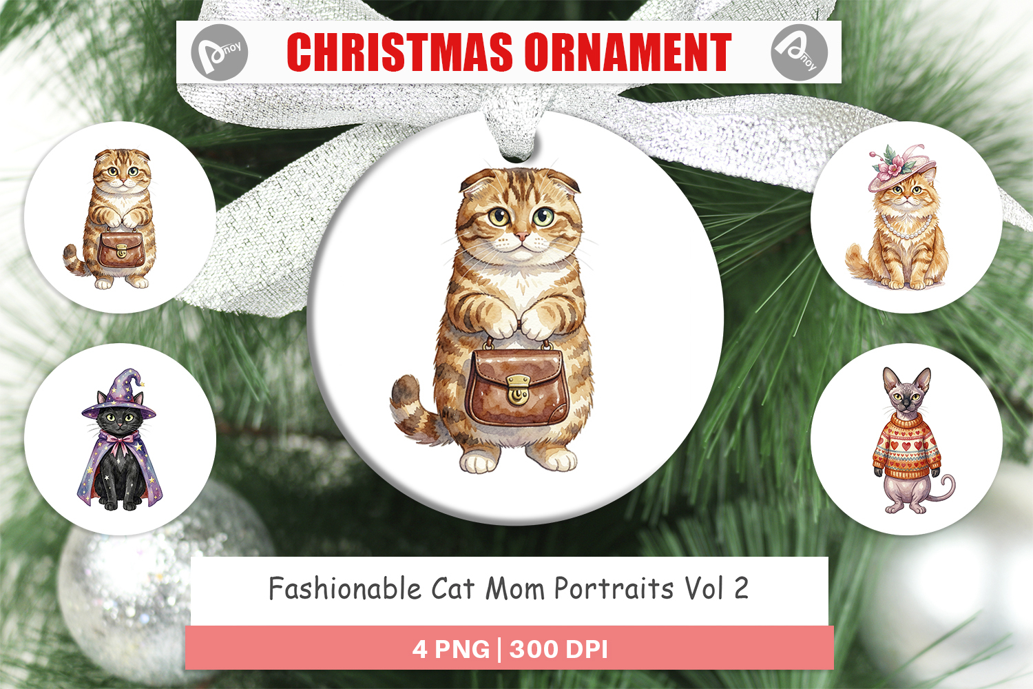 Christmas Ornament Sublimation Designs Cat Lover Gift Diy Ornament Ornament Design Png Round Ornament Sublimation Printable Gift Png Fashionable Cat Mom Cat Mom Portraits Stylish Cat Gift