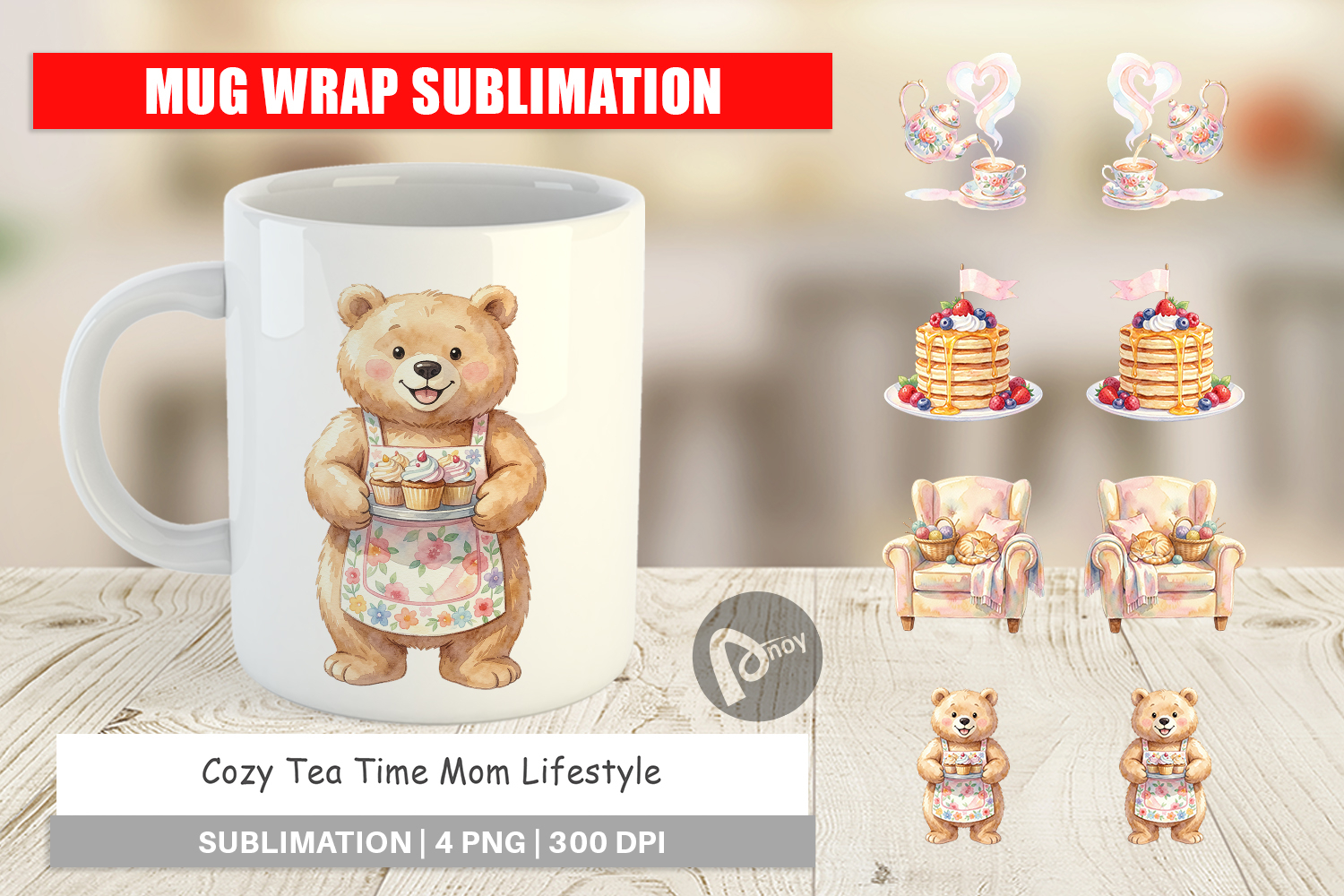 Cozy Tea Time Mom Lifestyle Mug Wrap example image 1