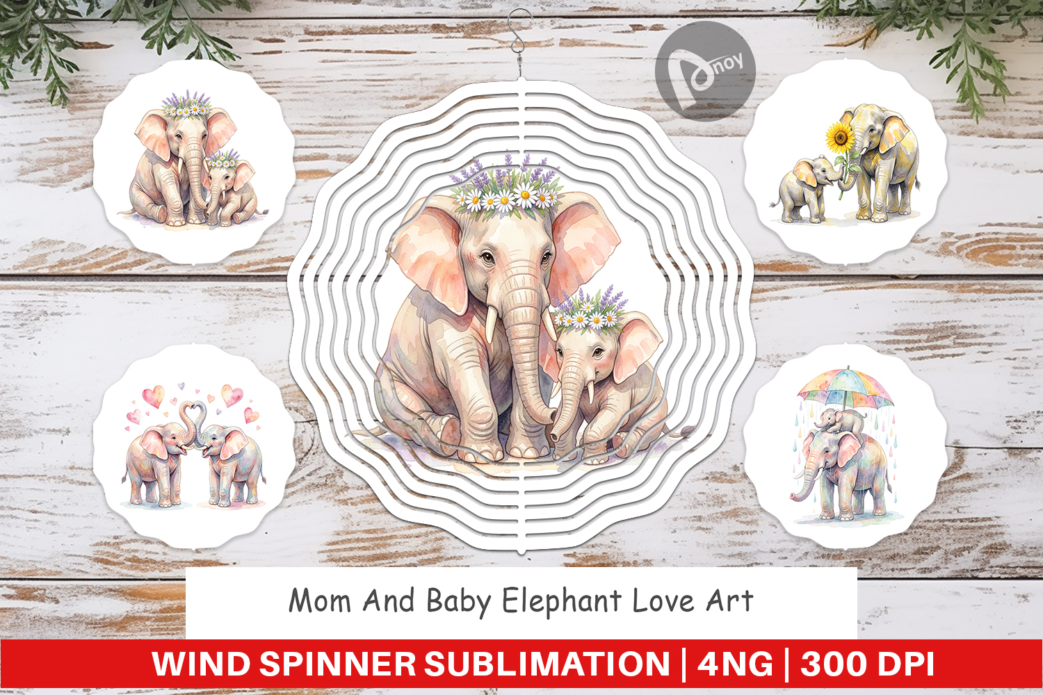 Mothers Day Gift Gift For Mom Diy Gift Idea Baby Elephant Art Wind Spinner Sublimation Sublimation Spinner Design Elephant Lover Gift Animal Garden Art Printable Spinner Png Mom And Baby Gift