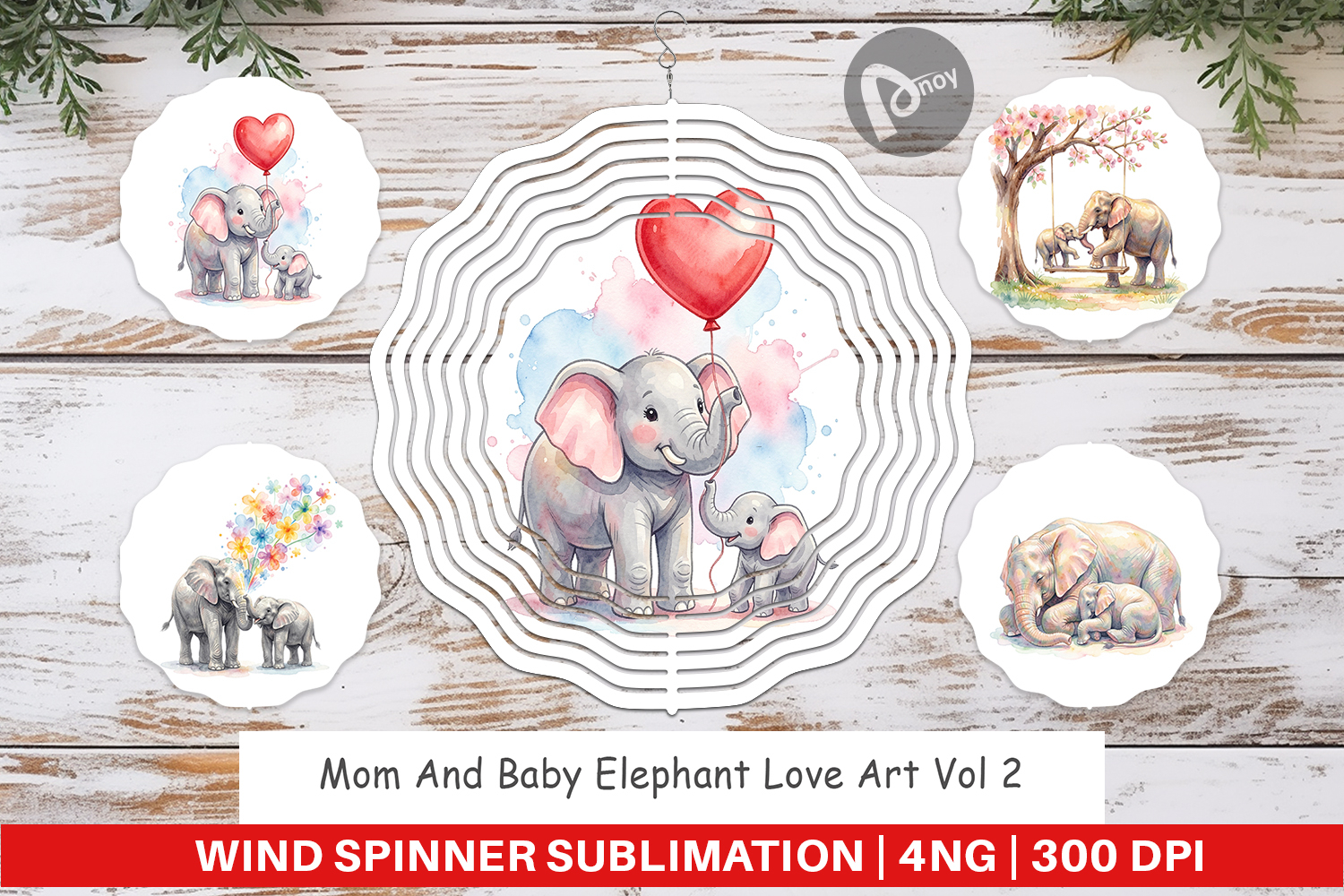 Mothers Day Gift Gift For Mom Diy Gift Idea Baby Elephant Art Wind Spinner Sublimation Sublimation Spinner Design Elephant Lover Gift Animal Garden Art Printable Spinner Png Mom And Baby Gift