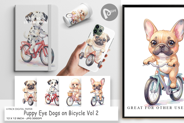 Puppy Eye Dogs on Bicycle Digital Paper example image 1