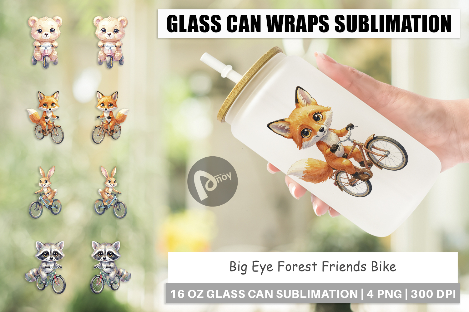 Gift For Nature Lover Sublimation Designs Woodland Animal Art Diy Gift Idea Libbey Glass Sublimation Glass Can Wrap Png Printable Drinkware Cute Animal Glass Can Cyclist Gift Idea Forest Friends Bike