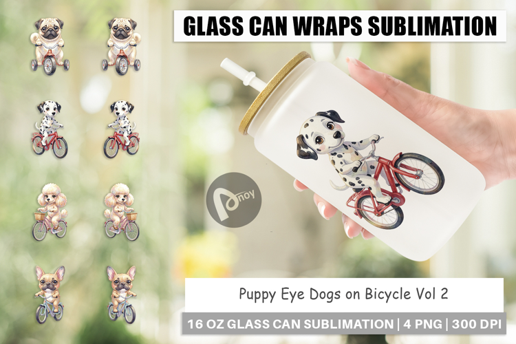 Puppy Eye Dogs on Bicycle Glass Can example image 1