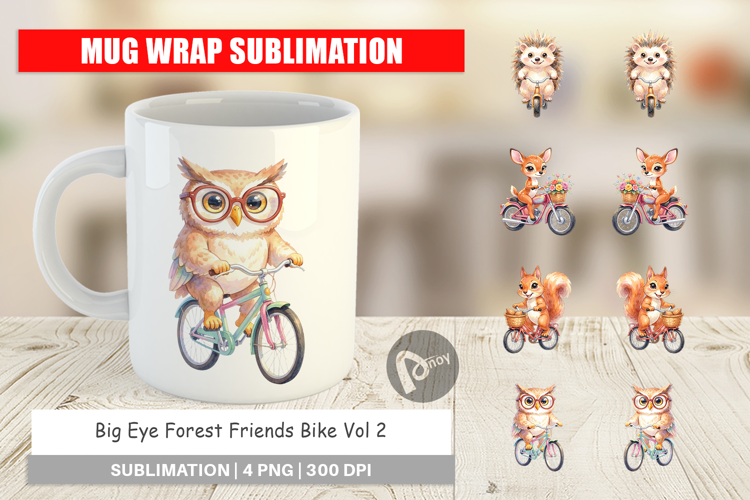 Big Eye Forest Friends Bike Mug Wrap example image 1