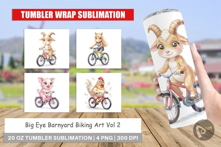 Sublimation Designs Diy Gift Idea Gift For Farmer Tumbler Sublimation Design Tumbler Wrap Png Farm Animal Tumbler Printable Gift Png Barnyard Biking Art Big Eye Animal Art Cyclist Gift Idea