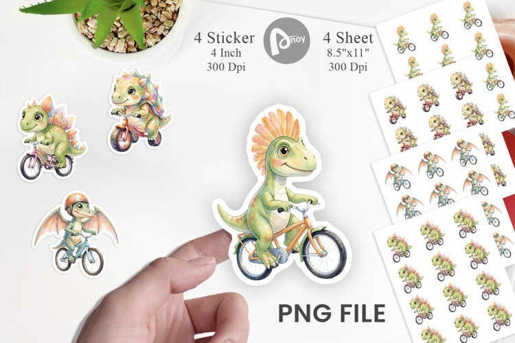 Planner Stickers Scrapbook Stickers Gift For Kid Journal Stickers Printable Sticker Sheet Funny Dino Sticker Cyclist Gift Idea Dinosaur Biking Art T-rex On Bicycle Big Eye Dino Sticker